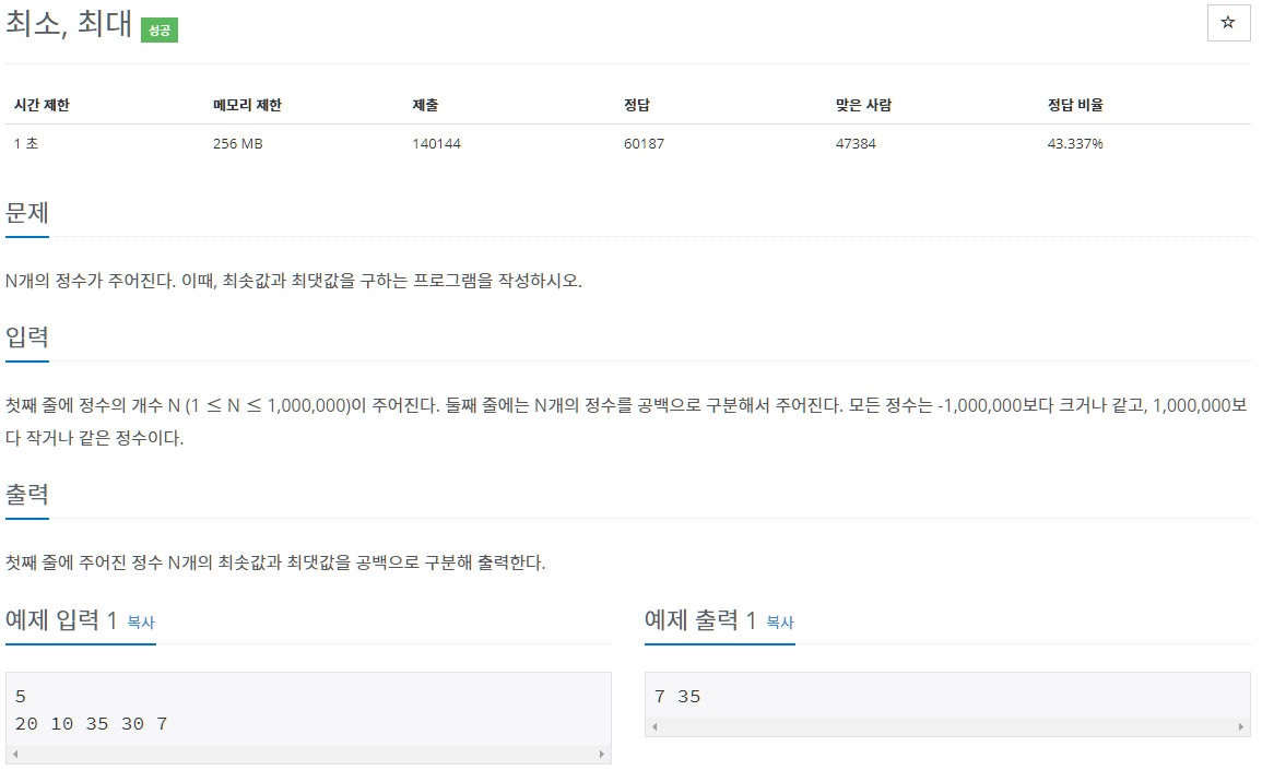 print(min(num), max(num))