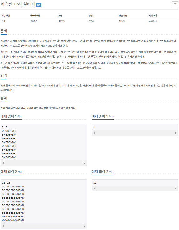 각 8 X 8판에서 맨 왼쪽 위 칸을 흰색인 경우와 검은색인 경우로 가정하여