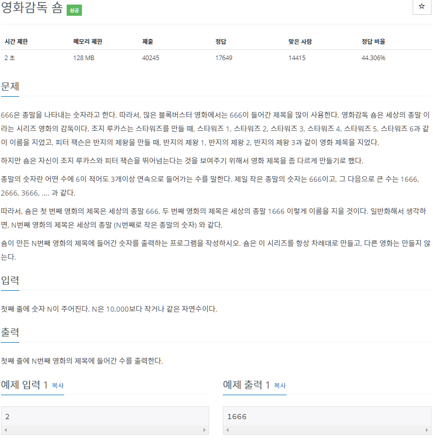 1부터 N번 째 "666"을 포함한 숫자가 나올 때까지 검사한다.