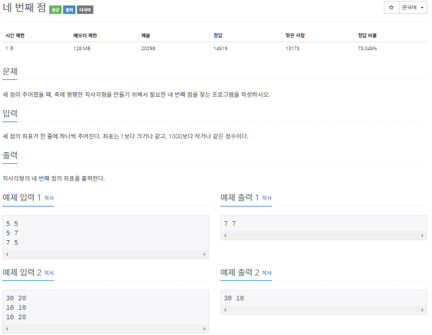 BAEKJOON PYTHON 3009 네 번째 점 (0) | 2021.08.21 |