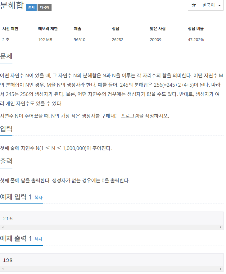 BAEKJOON PYTHON 2231 분해합 (0) | 2021.08.23 |
